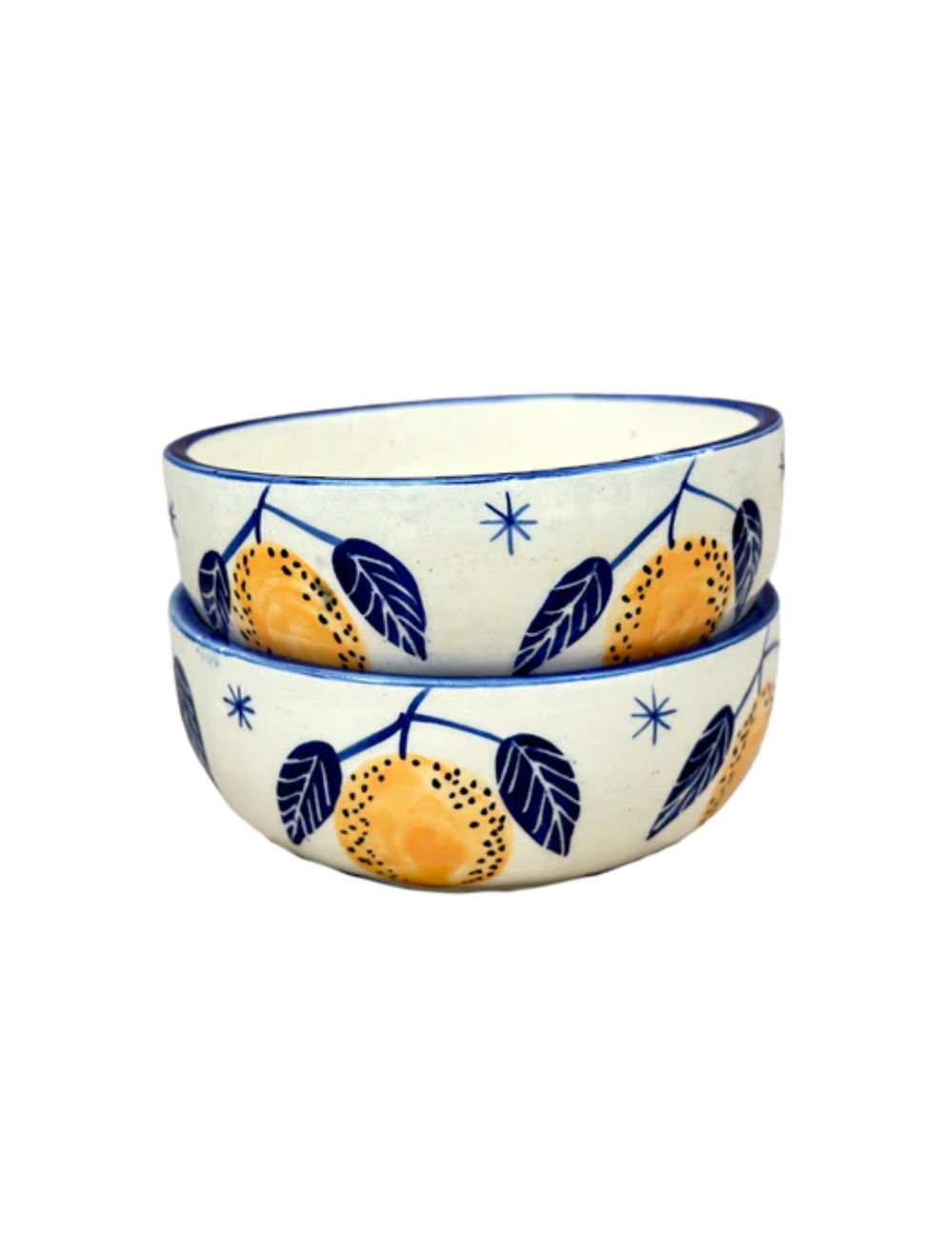 Un concentré de soleil sur votre table. Ce petit bol Limone capture la fraîcheur et la poésie d’un verger méditerranéen grâce à son motif de citrons lumineux et de feuillages bleu profond, entièrement peint à la main.