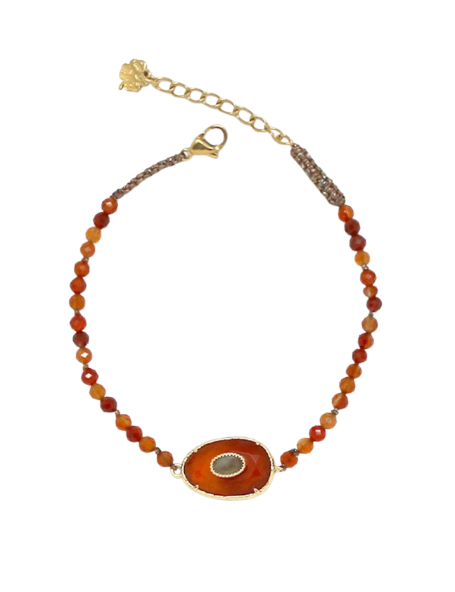 Le bracelet s’orne de perles facettées assorties qui captent la lumière avec subtilité. Léger, poétique et facile à porter, il se mêle aisément à d’autres bracelets dorés ou en pierres naturelles pour créer un jeu de contrastes raffinés.