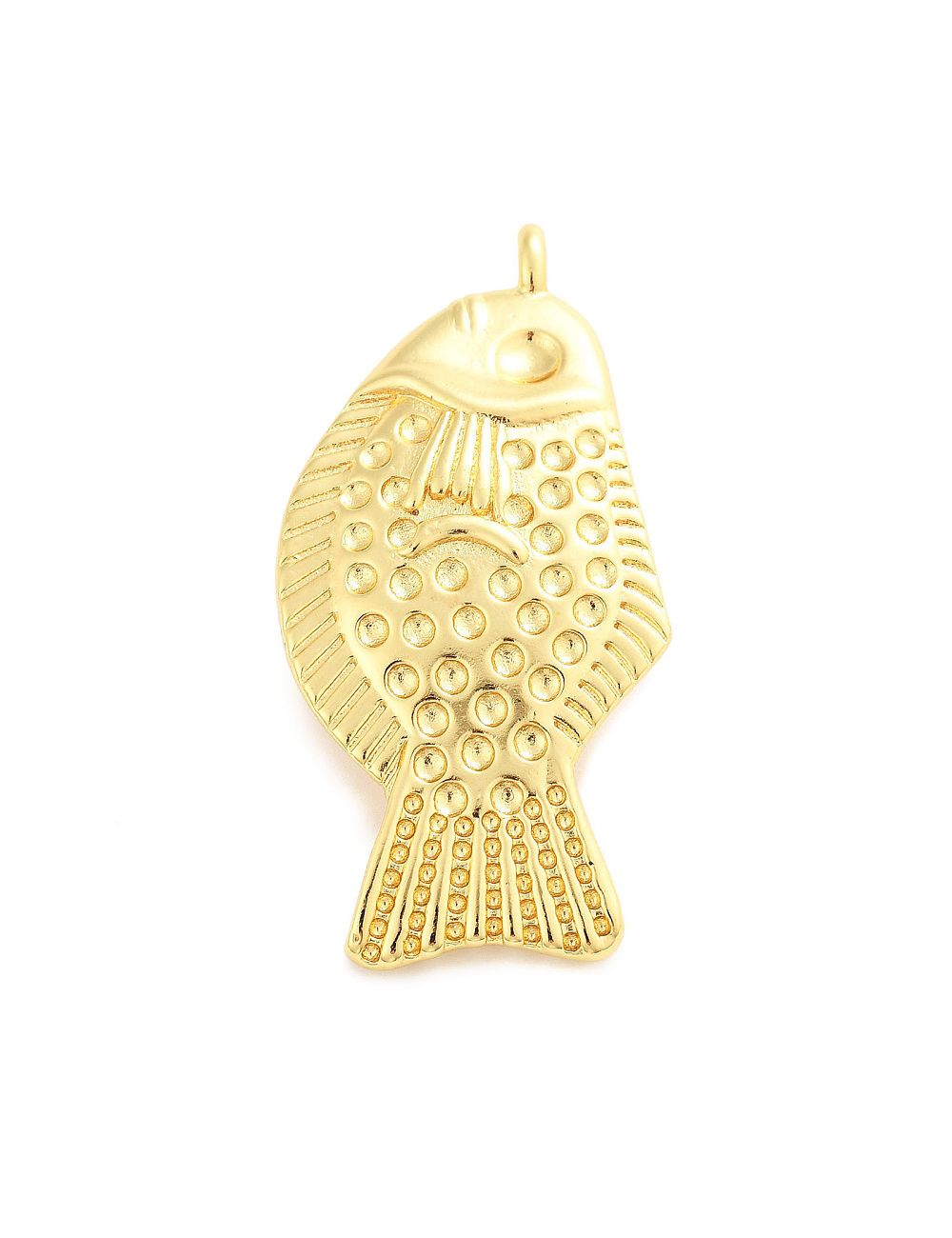 Ce charm poisson au design graphique séduit par ses lignes épurées et son style résolument vintage. Orné d’un motif de pois réguliers et de stries délicates, il évoque les talismans méditerranéens et les bijoux d’antan, entre symbole porte-bonheur et clin d’œil artistique.