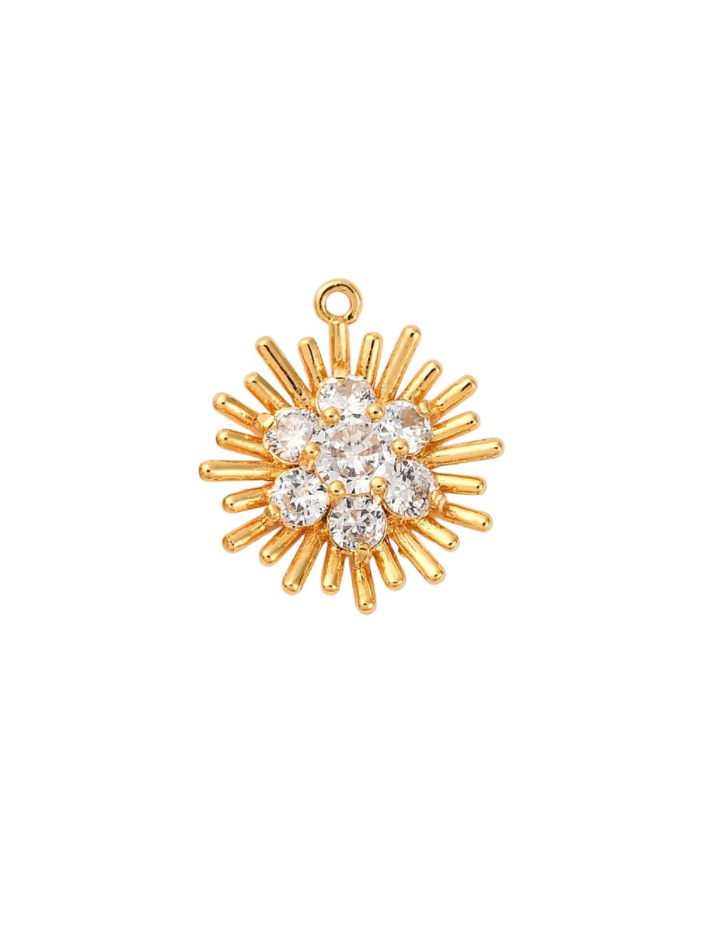 Ce charm solaire incarne la lumière, la joie et la puissance intérieure. Inspiré des rayons du soleil, son design rayonnant et parfaitement symétrique évoque une énergie vitale qui illumine chaque tenue. Le cœur central, légèrement surélevé, capte la lumière avec intensité, tandis que les rayons dorés s’étirent harmonieusement tout autour.