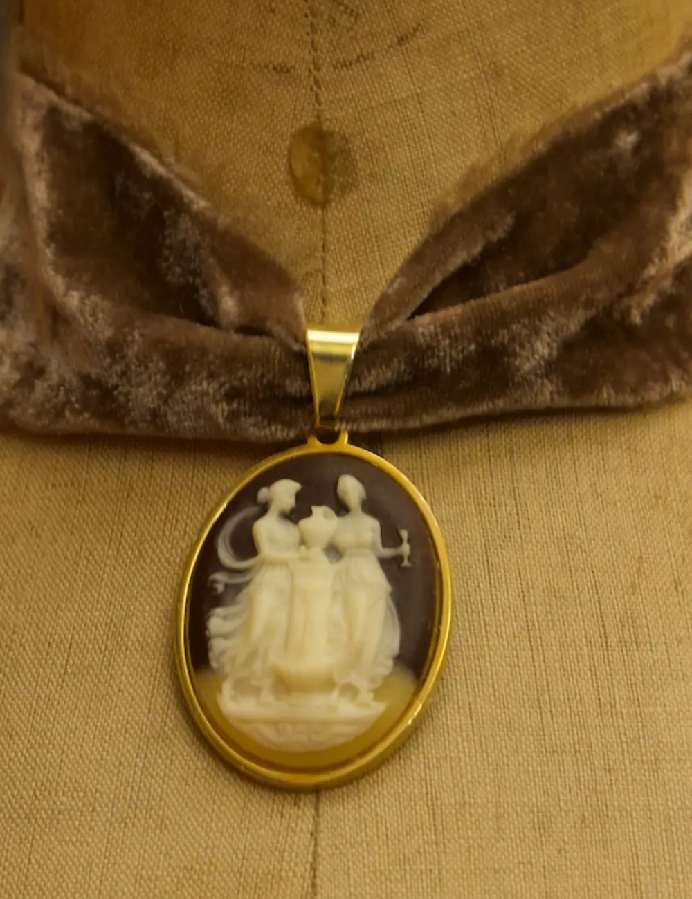 Choker en velours de soie, ruban de 3 à 4cm de largeur, longueur 30cm + rallonge, pendant camée en résine ou intaille en verre 3-4cm