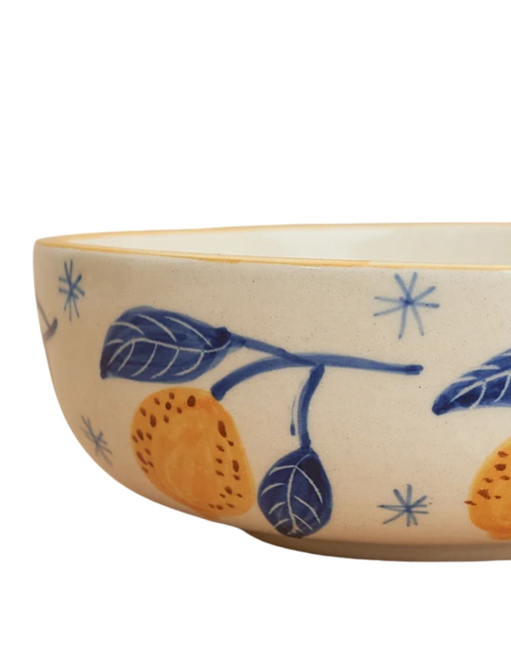 Avec ses citrons éclatants et ses feuillages d’un bleu profond, le bol Limone évoque la fraîcheur d’un verger en été, entre les collines italiennes et les terrasses baignées de lumière. Chaque pièce est peinte à la main, révélant un charme artisanal et une allure solaire.